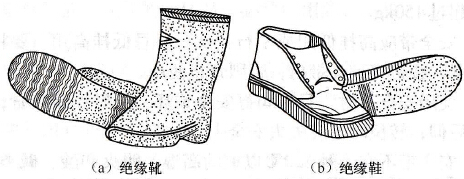 絕緣靴(鞋)是在任何電壓等級的電氣設備上工作時用來與地保持絕緣的輔助安全用具,也是防護跨步電壓的基本保安用具。絕緣靴、絕緣鞋的式樣如圖79所示。