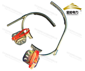 腳扣是攀登水泥電桿的主要工具之一,用腳扣的半圓環和根部裝有橡膠套或橡膠墊來防滑。