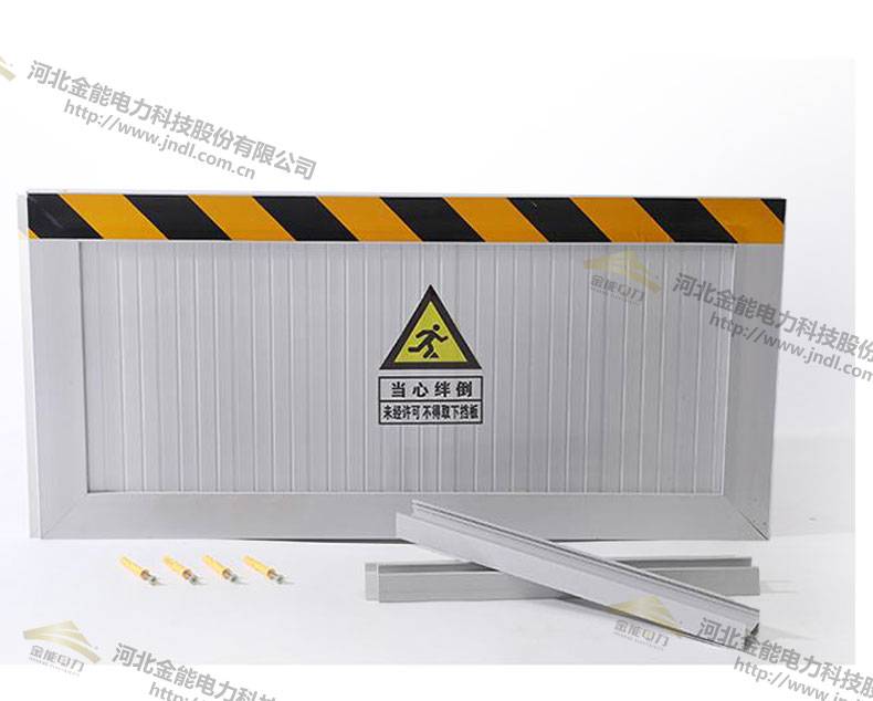 食堂專用防鼠板由鋁合金主面板、提示標、反光條、卡槽、螺絲等組成,如下圖1-1所示